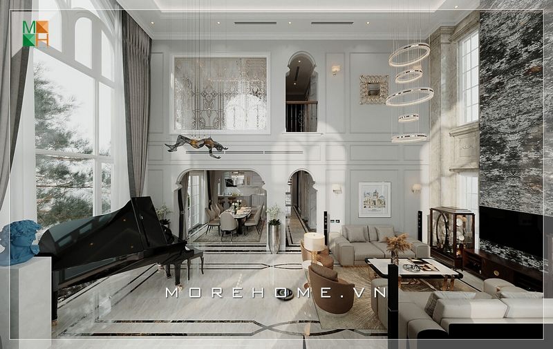 Biệt thự Vinhomes Imperia Hải Phòng được sắp xếp nội thất ấn tượng với phòng khách thông tầng đẹp, sang trọng.